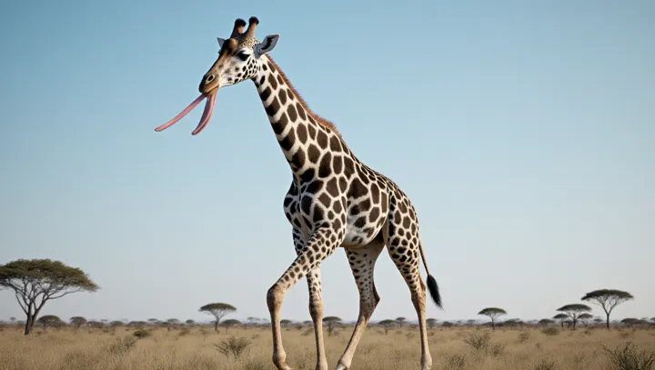 Длинный язык помогает жирафу собирать листья на вершинах деревьев и аккуратно выбирать корм. Он также облегчает доступ к труднодоступной пище и снижает конкуренцию с другими травоядными.
