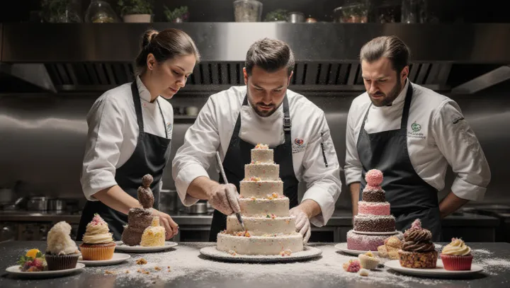 Главная идея простая: приготовление торта здесь сравнивают с созданием художественной работы. Мастера работают не только с тестом и кремом, но и с объёмом, фактурой и цветом, чтобы десерт выглядел как законченная скульптура.