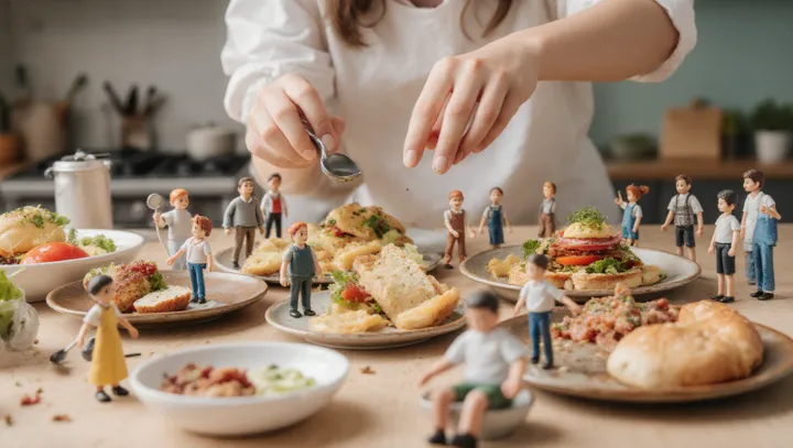 Местный фотограф создал серию необычных снимков, в которой повседневная еда превращается в сцену для миниатюрных фигурок. В кадре рядом с тарелками появляются крошечные люди и предметы, которые взаимодействуют с блюдами как с миром в миниатюре.
