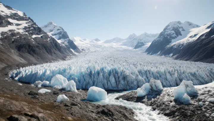 Ледники — это большие и долговечные массы льда на суше. Они возникают при многократном уплотнении снега и постепенно перемещаются под собственным весом. В отличие от сыпучего снега на склонах, ледник сохраняет ледовую массу и действует как медленный носитель воды.