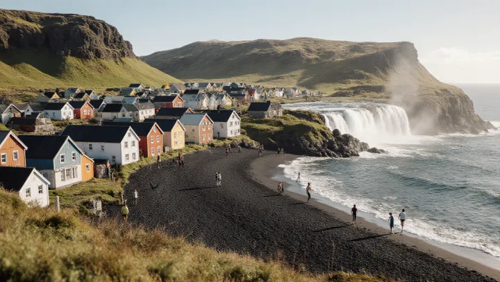 Юг Исландии известен драматическими пейзажами и лёгким доступом к главным природным объектам. Небольшие населённые пункты здесь часто располагаются рядом с водопадами, пляжами и ледниковыми панорамами, что создаёт контраст между спокойной местной жизнью и мощью природы.