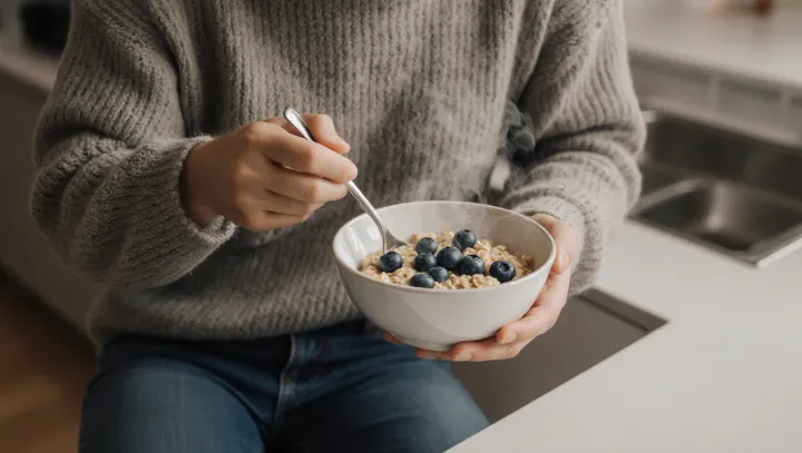 Овсянка обеспечивает организм цельными злаками и устойчивым источником энергии на утро. В ней содержится клетчатка, которая помогает поддерживать чувство сытости и равномерно распределять энергию в течение первой половины дня.