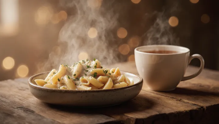 В меню послеполуденного чаепития появилась новая опция: макаронная тарелка, подающаяся вместе с чашкой чая. Это сочетание предлагает гостям тёплую, солёную альтернативу привычным сладким угощениям.