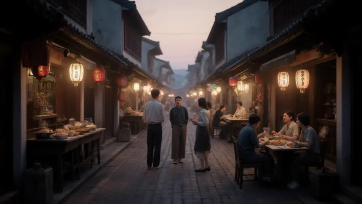 Чайные домики набережной и тихие лавочки сохраняют привычные ритуалы: шорох фарфора, неспешные разговоры, пар от свежезаваренного чая. В узких улицах слышен стук велосипеда и торговые выкрики уличных продавцов — запахи жареной лепёшки и специй смешиваются с вечерним воздухом, формируя узнаваемую звуковую и вкусовую палитру Ханчжоу.