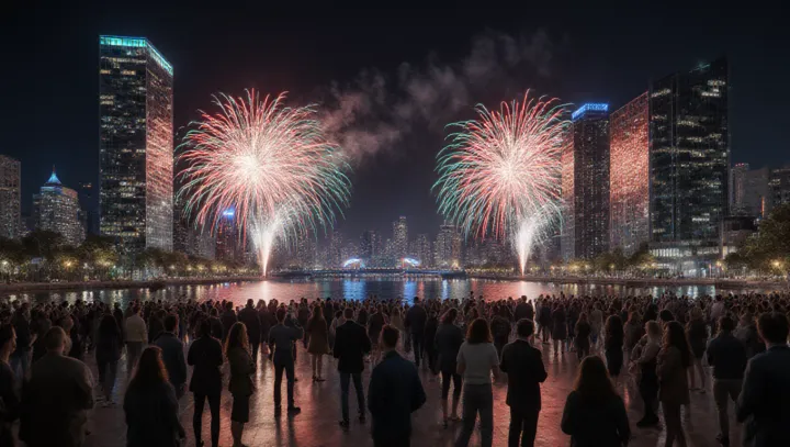 Нощното небе над множество градове бе изпълнено с фойерверки, докато хората отбелязваха Нова година и различни празнични събития. Светлините оформяха нови силуети на градовете и привлякоха струпвания край емблематични места, където тълпите се наслаждаваха на спектакъла.