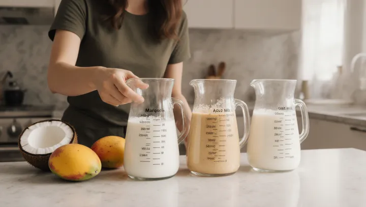 Главная рекомендация для манговых смузи — выбирать молоко в зависимости от желаемого вкуса и текстуры. Кокосовое, коровье, миндальное и овсяное молоко подходят по-разному: каждое меняет вкус, густоту и питательную ценность напитка.