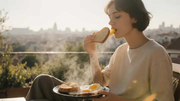 На терасите в квартала все по-често се вижда едно просто удоволствие: парче хрупкав хляб и няколко яйца. Това е малка, но стабилна пауза, която местните използват, за да се съберат или просто да спрат за момент.