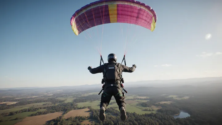 По заявлению разработчиков, устройство позволяет парашютисту не просто падать, а планировать на расстояние до сорока километров. Система сочетает парашютный спуск и аэродинамическое крыло.