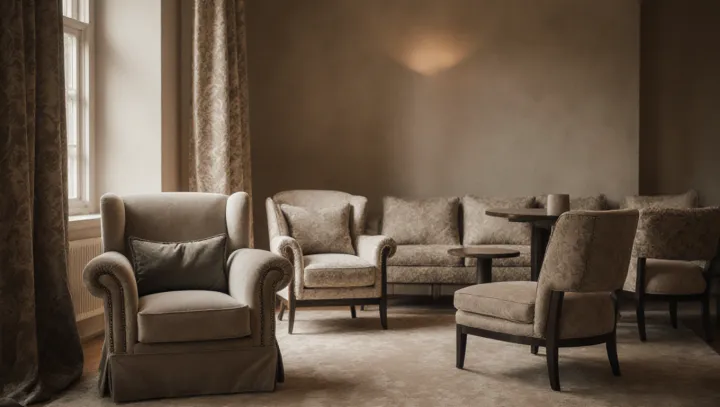 Классические сочетания просты: массивное кресло с высокой спинкой хорошо смотрится рядом с торшером и уютным пледом; строгие обеденные стулья гармонируют с подвесным светильником над столом; небольшие акцентные сиденья — пуфы или банкетки — добавляют фактуры через декоративные подушки и покрывала. Выбирайте пропорции, чтобы мебель не перегружала пространство, и играйте с контрастом материалов — дерево, металл и мягкая ткань.