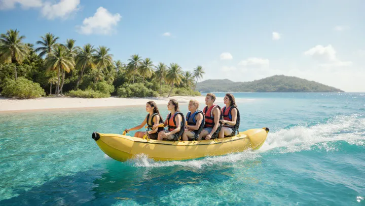 Небольшой остров вблизи побережья стал популярным местом для катаний на банановой лодке. Туристы отмечают впечатляющие виды моря и береговой линии, короткие захватывающие заезды и множество возможностей для фотографий на фоне скал и бухт.
