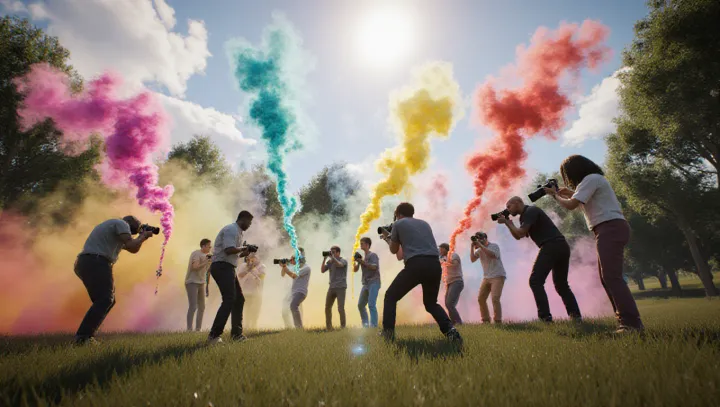 Местные фотографы и художники всё активнее используют цветной дым в своих проектах. Этот приём даёт быстрый визуальный эффект: он формирует атмосферу, подчёркивает движение и выделяет объекты на фоне ярких цветовых пятен.