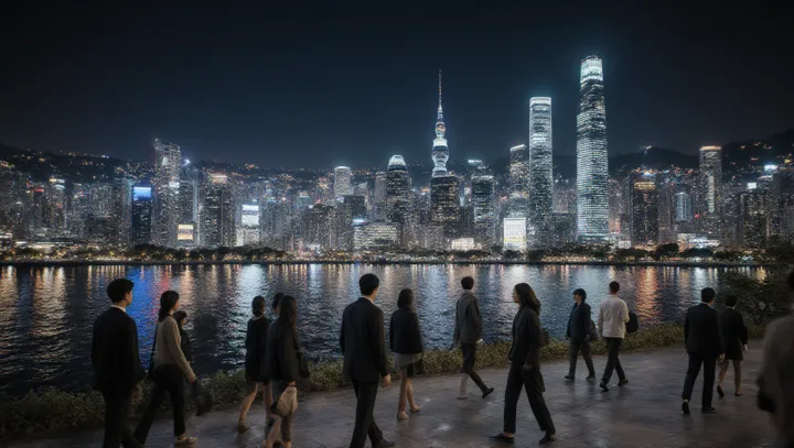 Подсветка подчёркивает контрасты между историческими кварталами и современными небоскрёбами. Отражения в воде и неоновые вывески добавляют динамики и делают сцену особенно выразительной.