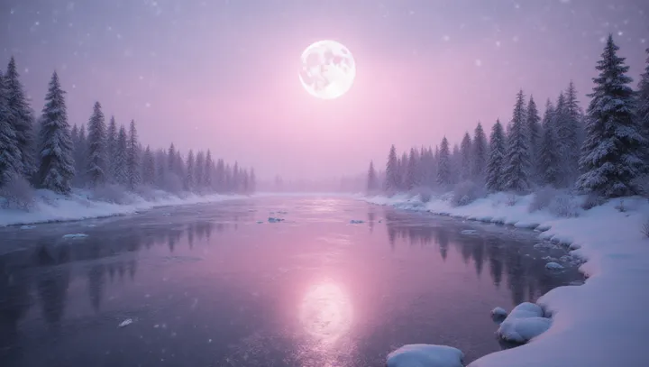 Нежна розова лунна светлина облива замръзналото езеро и създава мечтателна атмосфера, която привлича местни посетители и фотографи. Мнозина идват да видят отраженията и приглушените тонове, които превръщат познатия пейзаж в необичайна визуална сцена.