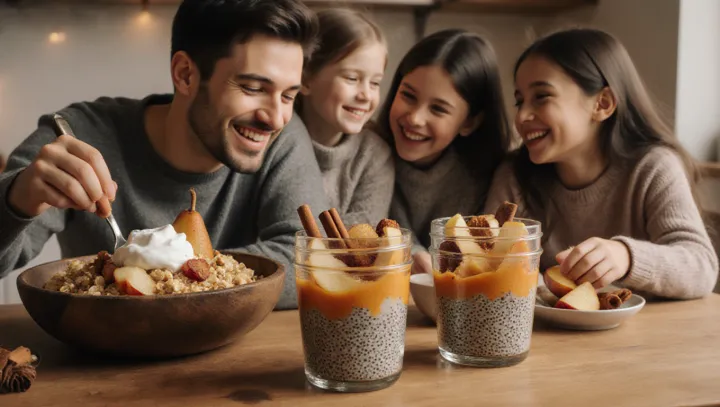 Главное — сочетание тепла и питательности. Четыре предложенных десерта легко приготовить дома и при этом получить полезные нутриенты: клетчатку, белок и полезные жиры.