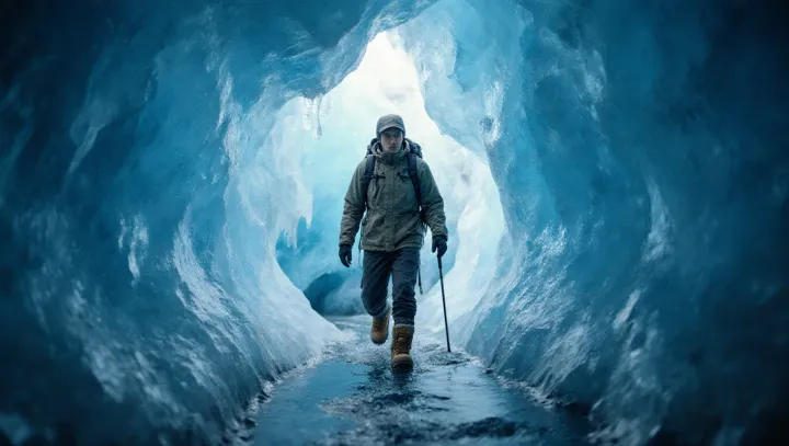 Местный турист совершил выход в ледяную пещеру и вернулся с необычными впечатлениями: потолок пещеры светился насыщенным синим оттенком, а по поверхности под ногами текли холодные ручьи. Своё наблюдение он описал как необычное сочетание красоты и суровых условий для передвижения.