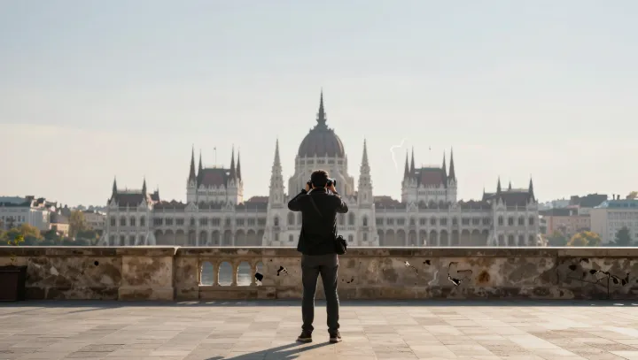 В Будапеща историческите сгради и човешките по мащаб улици често блестят под слънчеви небеса, създавайки спокойни и привлекателни сцени за жители и гости.