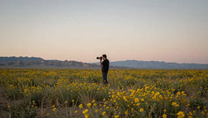 В отдалённой части пустыни Юты открывается редкое природное явление: поверхность земли на короткий срок покрывается сплошным ковром цветов. Это преображение ландшафта выглядит как настоящее море цветов и привлекает внимание местных и приезжих.