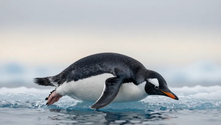 Пингвины лишены способности летать, но в воде они выглядят как прирождённые пловцы. Их компактное тело и перепончатые лапы дают им манёвренность и скорость, что помогает ловить рыбу и избегать хищников. Многие виды проводят большую часть жизни в море, возвращаясь на сушу ради размножения.