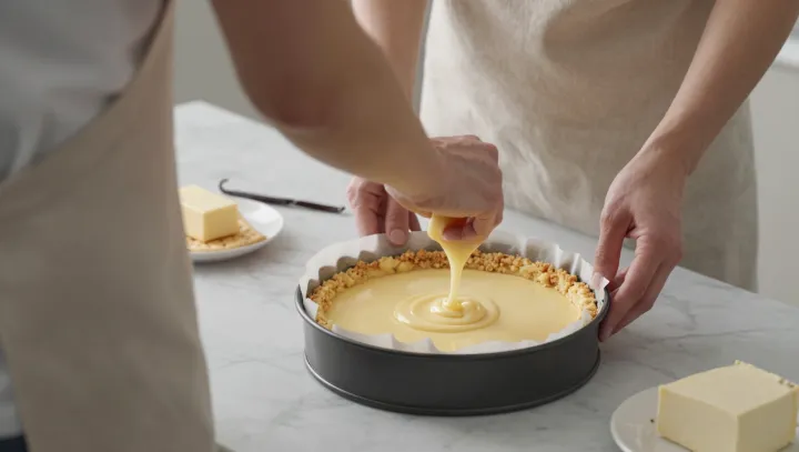 Водеща идея: копринен и равен чийзкейк започва от прости техники. Правилната подготовка на домашната кора и щадящото печене намаляват риска от пукнатини и осигуряват деликатна текстура.