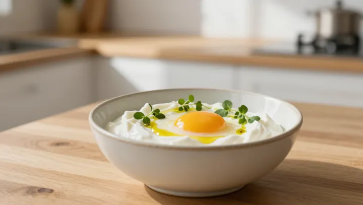На самом обычном завтраке миска домашнего йогурта рядом с жареным яйцом тихо переписывает привычный сценарий питания. Это повседневное, почти минималистичное на вид сочетание на самом деле дает в сжатом виде полноценный белок, хорошо усваиваемый кальций, витамины группы B и живые пробиотические культуры в одном приеме пищи.