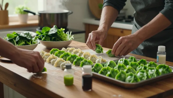 В теории зелёная оболочка, приготовленная из шпината, капусты кейл или других листовых овощей, должна приносить дополнительный хлорофилл, каротиноиды и небольшое увеличение содержания пищевых волокон. Эти соединения могут влиять на антиоксидантный потенциал и косвенно на базовый уровень метаболизма, поддерживая общее метаболическое здоровье. Но эффект зависит от дозы: чайная ложка овощного пюре, замешанная в большой объём теста из рафинированной пшеничной муки, почти не меняет плотность микронутриентов или гликемический индекс, даже если оттенок выглядит впечатляюще.