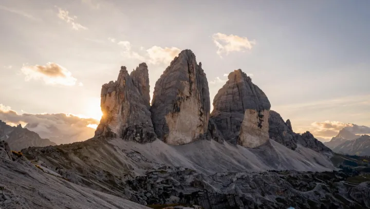 Причина закатного сияния Тре Чиме в Доломитах — не романтика, а сама порода. Светлые утёсы сложены из доломита, кальций‑магний‑карбоната, чья кристаллическая решётка и размер зёрен формируют очень специфический спектр отражения. Вместо того чтобы поглощать длинные волны, эти скалы с высокой эффективностью отражают оранжево‑красный свет, когда Солнце опускается низко.
