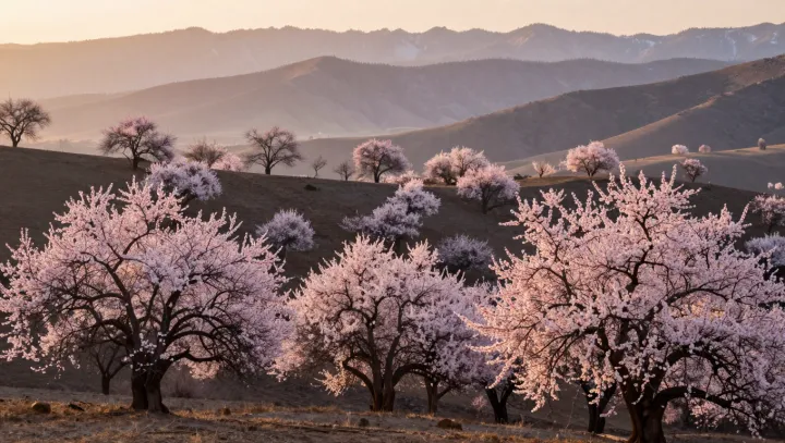 Обширный полог диких абрикосовых деревьев превращает Турген в Алтайских горах Китая каждую весну в пейзаж, похожий на нарисованную фантазию. Издалека мягкие переливы розовых и белых оттенков вызывают ассоциации с масляной живописью. Вблизи экологи видят совсем иное: сложную живую инфраструктуру, которая укрепляет горные склоны, аккумулирует воду и служит убежищем для запутанной сети видов.