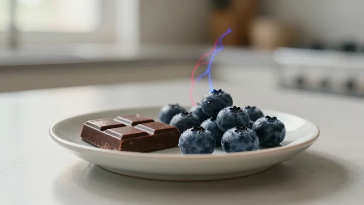 Ключ к эффекту кроется в биоактивных веществах, а не в калориях. Флаванолы тёмного шоколада и антоцианы черники регулируют дофаминергические и серотонинергические пути, а также улучшают мозговой кровоток за счёт влияния на эндотелиальный оксид азота. Это двойное действие поддерживает более быструю синаптическую передачу и лучшее насыщение кислородом префронтальной коры — области, критически важной для исполнительных функций и устойчивой концентрации. В отличие от них, десерты без сахара обычно дают лишь ощущение сладости, почти не влияя на высвобождение нейромедиаторов и согласованность работы нервной и сосудистой систем в мозге.