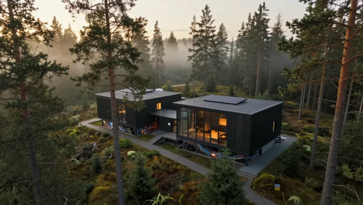 Архитекторы и инженеры затем работают с климатом, а не вопреки ему. Высокие показатели теплоизоляции, тройные стеклопакеты и контролируемая вентиляция снижают потребность в отоплении за счёт уменьшения теплопотерь, тогда как тепловые насосы используют стабильную температуру грунта через геотермальный теплообмен. Деревянное строительство, опирающееся на оценку полного жизненного цикла и углеродный учёт, позволяет использовать лес как возобновляемый ресурс, не выходя за национальные пределы устойчивой лесозаготовки. В результате формируется курортная модель, в которой фасад выглядит как дикая природа, а «операционная система» функционирует как эффективная городская микросеть.