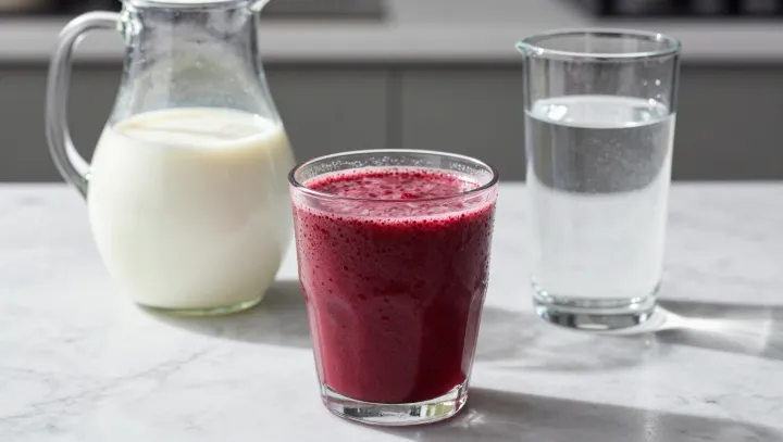 Если добавить молоко, физиология перераспределяется. Белок и жир в молоке стимулируют выделение холецистокинина и пептида YY — кишечных гормонов, тесно связанных с сигналами сытости в гипоталамусе. Одновременно белок может снижать фактическую гликемическую нагрузку напитка, замедляя пищеварение, но часто вызывает более сильный инсулиновый ответ в пересчете на каждый грамм углеводов. Энергетическая плотность повышается, базальному обмену нужно меньше внешнего «подстегивания», чтобы ощущать достаток энергии, и мозг воспринимает смузи уже не как легкий фруктовый напиток, а как компактный прием пищи.