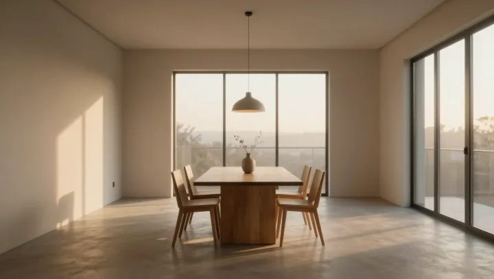Конус тёплого света над обеденным столом и одна-единственная ваза в центре тихо переписывают сценарий семейных ужинов. Когда всё за пределами этого круга погружается в мягкую полутьму, визуальное поле сужается, когнитивная нагрузка снижается, а внимание притягивается к лицам и к общему объекту между ними.