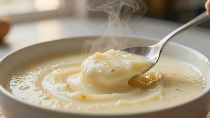 Мелкое натирание сыра и медленное томление увеличивают площадь поверхности сыра, обеспечивают более полное увлажнение и разворачивание белков, что улучшает устойчивость эмульсии и ощущение во рту. Вместо того чтобы полагаться на добавленные сливки, кулинар использует реологию: вязкость, предел текучести и сдвиговое разжижение возникают из самой микроструктуры. До ложки доходит не просто суп, а специально сформированная текстура, построенная из цепочек крахмала и молочных мицелл.