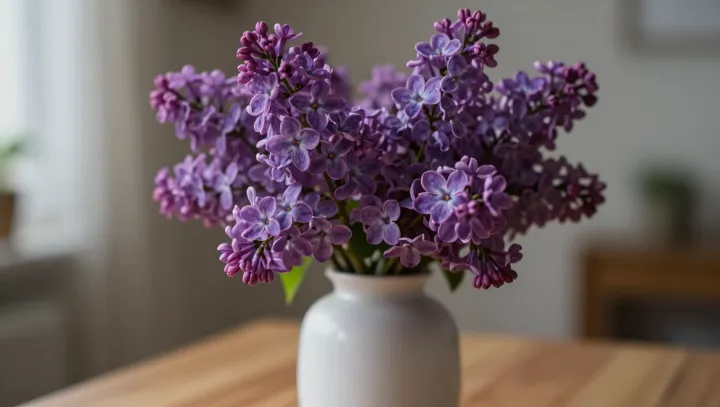 Гроздь бледно‑фиолетовых лепестков стоит на фоне абсолютно белой вазы — и цвет внезапно будто сдвигается, словно кто‑то незаметно подвинул ползунок насыщенности. Те же самые цветы, те же пигменты, но глаза упорно «видят» фиолетовый то глубже, то светлее, чем он выглядел в другой ёмкости. Перекрашивает здесь не растение, а ваша зрительная система.