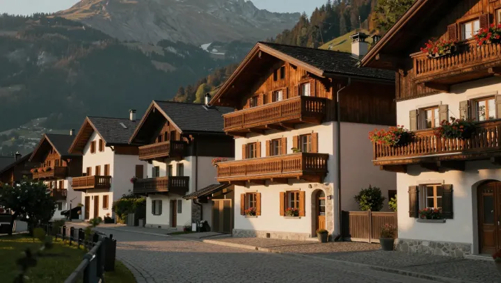 Сначала появляются крыши — словно россыпь пикселей на фоне каменной стены Альп. Приглядевшись, видишь, что каждый дом будто бы следует собственному сценарию: острые стеклянные объемы соседствуют с шале с глубокими свесами, темные деревянные кубы — со светлыми каменными амбарами. Но материалы градостроительного планирования в местной управе настаивают: этот кажущийся хаос на самом деле является строго кодифицированным порядком.