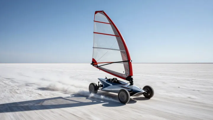 Сухопутная яхта мчится по пересохшему озёрному дну без всякого двигателя, но стрелка спидометра подбирается к автомобильным значениям. Секрет в том, что парус работает не как простая «ловушка» ветра. Он действует как аэродинамический профиль, создающий подъёмную силу, которая через колёса перенаправляется в поступательную тягу вперёд.