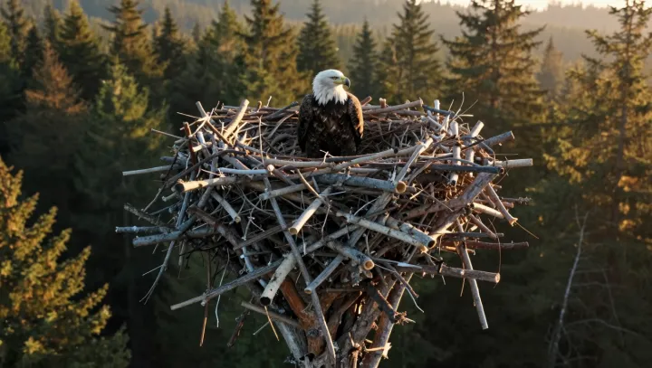 Гнездо белоголового орлана может по массе сравняться с небольшим автомобилем, но при этом располагается в развилке дерева и не обрушивается. Конструкция растёт сезон за сезоном: одна и та же пара возвращается и наращивает новые слои материала поверх старого деревянного «ядра», которое продолжает нести основную нагрузку.