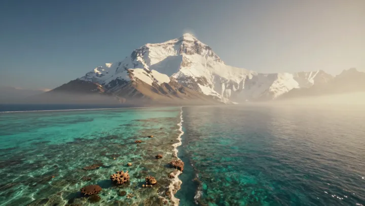 Этот разрыв — не поэтический контраст, а результат тектоники плит и изостазии, геофизических процессов, которые утолщают континентальную кору и позволяют ей подниматься, в то время как океанические плиты остаются более плотными и низкими. Столкновение Индийской плиты с Евразийской подняло Гималаи, сконцентрировав массу горных пород в экстремально высокой точке. На другом конце спектра коралловые острова Мальдив поднимаются всего на несколько метров над средним уровнем моря; их известняковые основания созданы биологическим наращением, а не грандиозным горообразованием.