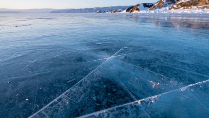 Биологические процессы затем незаметно усиливают эту прозрачность. Планктон и донные организмы работают как живая фильтрационная сеть, удаляя органические частицы еще до начала устойчивого зимнего ледостава, напоминая тем самым снижение энтропии в тщательно управляемой станции водоочистки, хотя общая энтропия окружающей среды при этом все равно возрастает. Устойчиво низкие температуры и относительно слабый ветер уменьшают механическое перемешивание, поэтому в толще льда оказывается меньше воздушных карманов и трещин. Большой объем воды здесь становится преимуществом: значительная глубина сглаживает перепады температуры, обеспечивает медленное и равномерное промерзание поверхности и превращает зимнюю ледяную «кожу» Байкала в прозрачную линзу, а не в мутный щит.