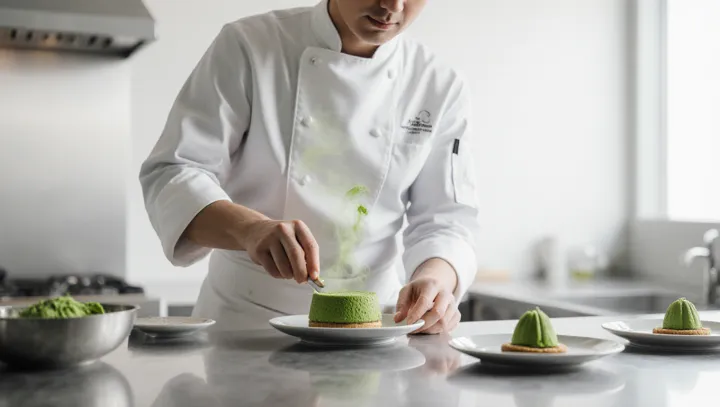 Контраст усиливает эффект: терпкий зелёный чай подчёркивает сладость, а аромат матча действует как связующее звено между блюдами. Текстура — будь то крем, мусс или бисквит — добавляет тактильную завершённость, делая финал не просто сладким, а значимым.