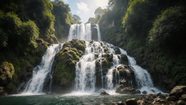 Аливагваг расположен на Филиппинах и выделяется своей многоступенчатой формой. Это место сразу привлекает внимание: водопад не один уступ, а целая цепь каскадов, которые последовательно сменяют друг друга.