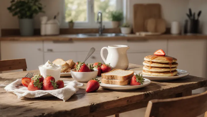 Подход прост: тост с творожным сыром и клубникой, миска йогурта с ягодами или нежные блины с ломтиками фруктов. Простые сочетания работают лучше сложных рецептов. Они не торопят, дают возможность сосредоточиться на вкусе и создать приятную атмосферу за столом.