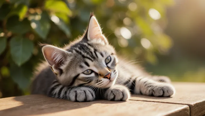 Во дворе котёнок устроился на доске, согретой солнцем, и мирно дремал. Он комфортно свернулся, не обращая внимания на редкие взгляды прохожих. Соседи подходили ближе, чтобы тихо полюбоваться, но не тревожили животное.