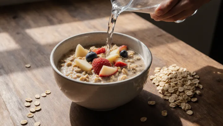 Простые советы по замачиванию: на одну часть хлопьев берите примерно 1–1,5 части жидкости — молоко, растительное молоко или йогурт. Добавьте немного подсластителя по вкусу. Оставьте в холодильнике на несколько часов или на ночь, затем при необходимости доведите до желаемой консистенции.