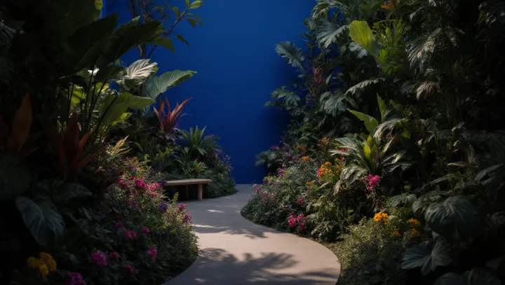 Сад Мажорель привлекает горожан своей необычной атмосферой и насыщенной растительностью. Главная визуальная доминанта — глубокий синий фон, который подчеркивает яркость цветочных групп и придает территории художественное звучание.