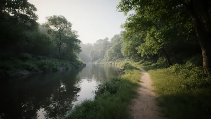 [Небесный лес у реки представляет собой прибрежный массив, который местные ценят за атмосферу уюта и умиротворения. Рядом с рекой создаётся ощущение отдалённого природного уголка, где можно ненадолго уйти от городской суеты.]