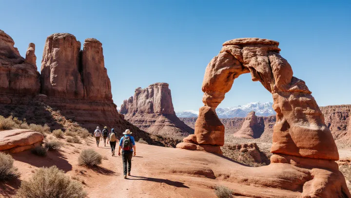 Национальный парк Арчес привлекает любителей природы своими многочисленными арками из песчаника. На территории парка расположены смотровые площадки и пешеходные тропы, позволяющие увидеть разнообразные скальные формы без необходимости в сложном снаряжении.