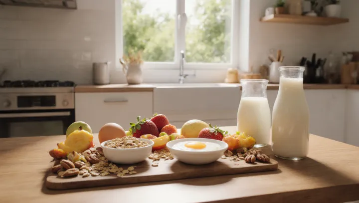 Практичные варианты для ежедневного завтрака: яйца, йогурт, овсянка, орехи, фрукты и молоко. Простые сочетания работают особенно хорошо: омлет с овощами и цельнозерновым хлебом, йогурт с овсянкой и ягодами, каша с орехами и молоком.