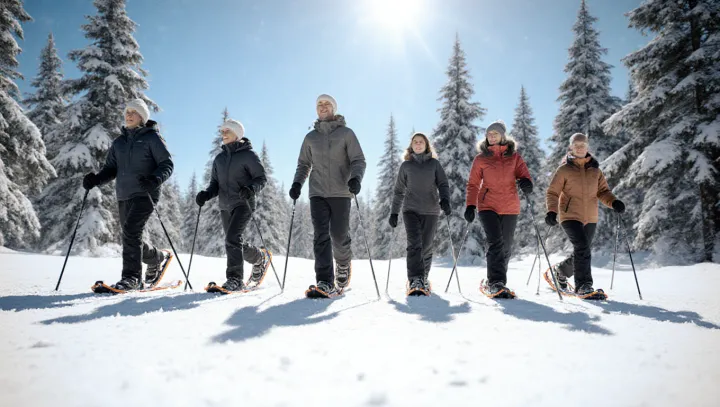 Основа — простое снаряжение: снегоступы, удобные утеплённые ботинки и при желании треккинговые палки. Одежда по принципу слоёв позволяет регулировать тепло. Для старта достаточно минимального набора, многие хорошо оснащённые точки предлагают примерку и советы.