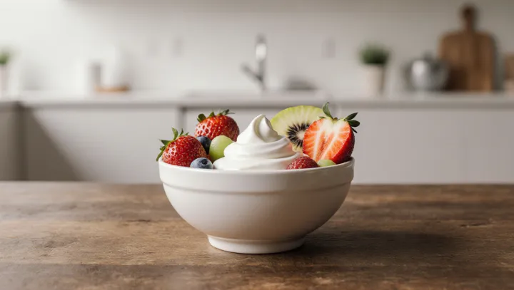 Идеи подачи: слои йогурта и фруктов в баночке как парфе, ягодно-йогуртовая миска с семенами и орехами, дип для фруктов или замороженные шарики йогурта с кусочками фруктов. Дополните овсяными хлопьями, мятой или тёртым яблоком для текстуры.