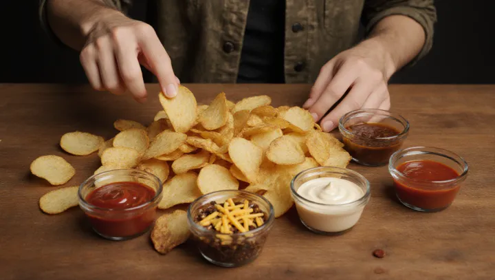 Простые советы: подавайте соус в небольшой чашке, чтобы не размокали чипсы; пробуйте соотношения и начинайте с малой дозы острого или трюфельного вкуса; комбинируйте текстуры — густой соус с тонкими чипсами, легкую заправку с плотными. Так легко найти свой идеальный вариант.